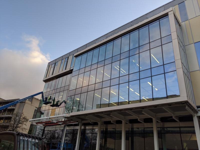 Structural glazing curtain walling, rainscreen cladding, coping flashings, glass-to-glass joints and brise soleil installation.